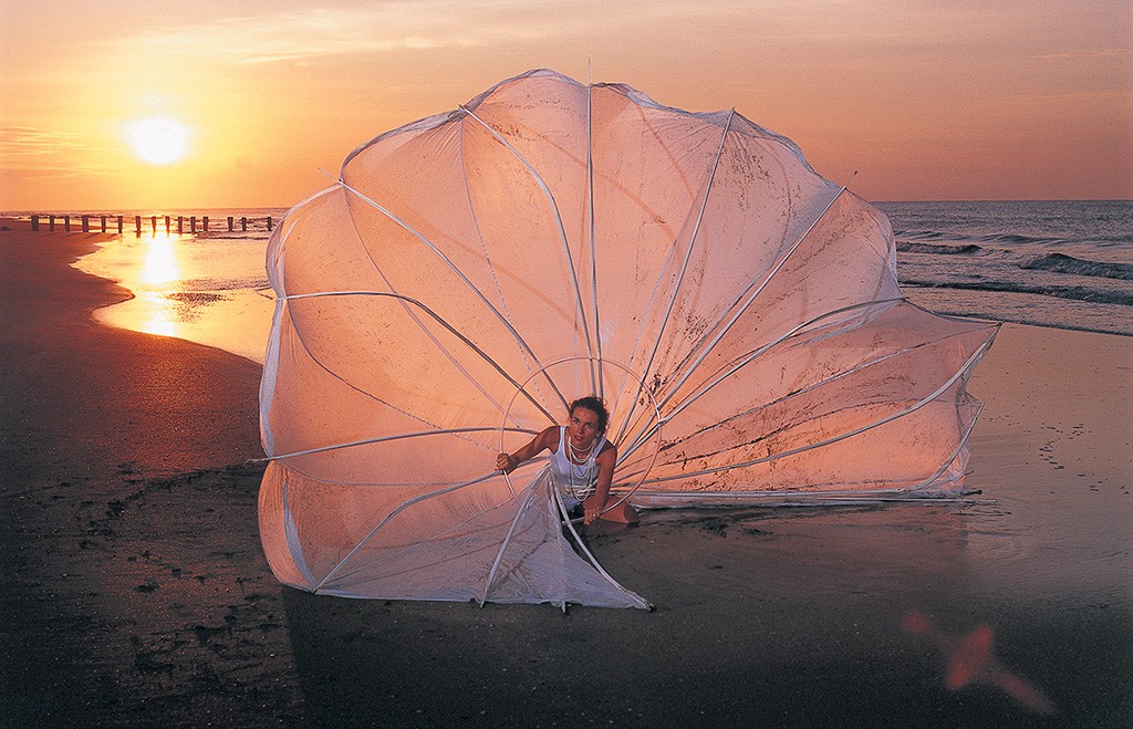 Natura Mare or the unbearable lightness of the megabyte is a marathon dance by Regina Frank competing with her digital super ego as video projection. She danced against and in front of two screens, showing a digital day speeding from sunrise to moonrise in 33 minutes. While the video does not show any exhaustion, on stage you heard her breath, bones crack - "wind, summer, sunshine, bird, shell, and flower becomes a digital dream; my parachute silk dress a back-breaking burden.”