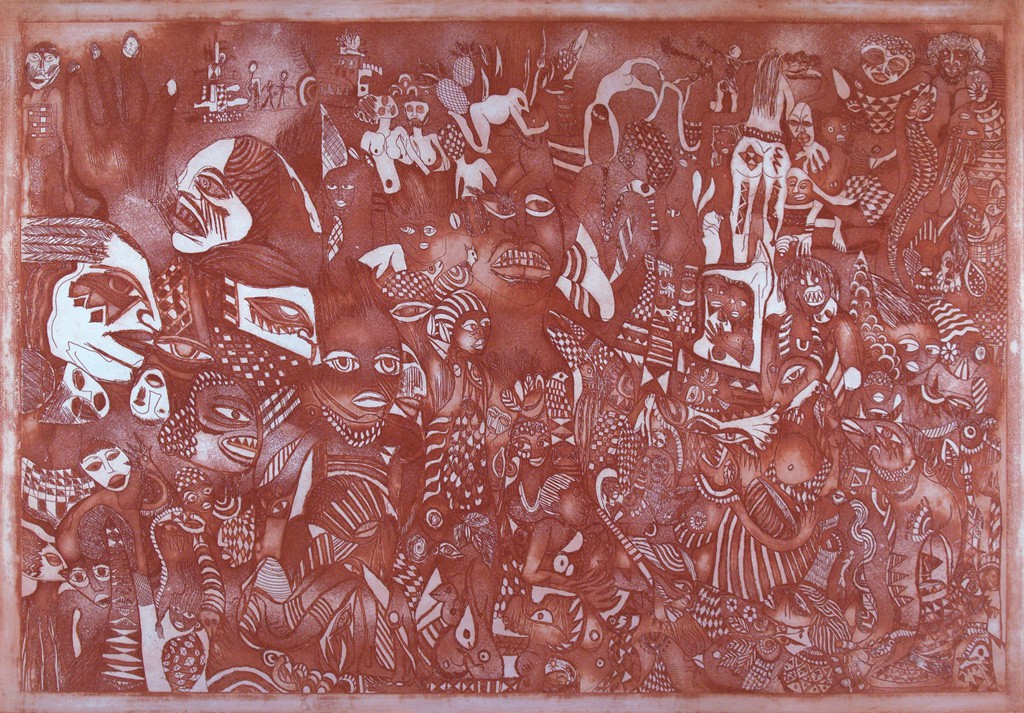 The edition of the engraving "Khanimambo Baka Ngwenya II" was approved and printed during the painter Malangatana's lifetime, but not signed by him. All copies were authenticated with the white seal of the CPS, with the authorization of the edition certified by the affixing, by the Malangatana Foundation, of the seal that reproduces the painter's signature .