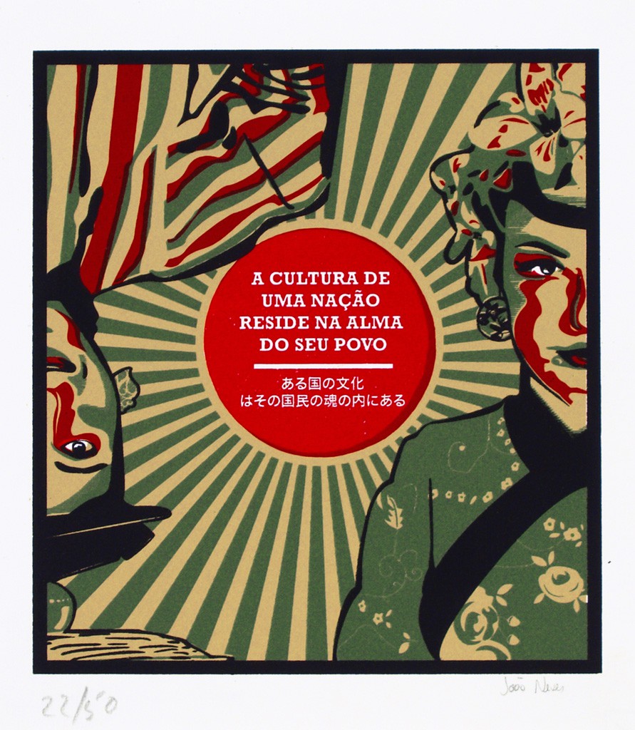 Screen printing designed for the JP_PT Project, an initiative by IADE and the KOOGEI Institute in Tokyo, around the theme: Portugal/Japan - Cultural Contrasts.