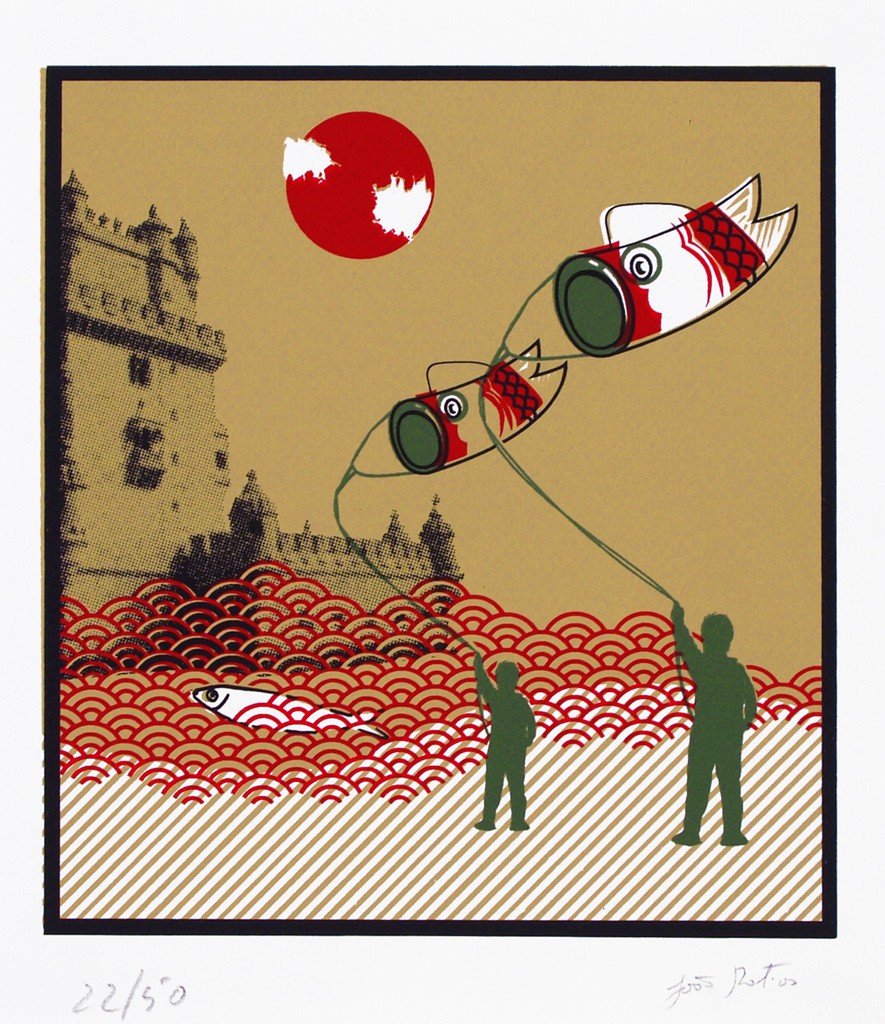 Screen printing designed for the JP_PT Project, an initiative by IADE and the KOOGEI Institute in Tokyo, around the theme: Portugal/Japan - Cultural Contrasts.