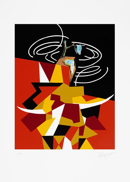 Love is painting, evoking a well-known title by Claude Roy, explains and summarizes not only the entire career of the great painter and already historic illustrator, Dorindo Carvalho (b.1937), but also one of the most interesting series of his paintings, which he titled “My Masters”, already represented in in two previous editions of the Portuguese Center for Screen Printing by Picasso and Matisse. Picasso is unanimously considered the most emblematic artist of the 20th century and Matisse is the one who gave birth to art. line and to the color the leading role in painting, now joins another of the leading names in modern art and international Surrealism, Salvador Dali. His famous painting “Persistence of Memory” (1931) is evoked in the image of “soft watches”, in dialogue with the abstract aspect of the work of Dorindo Carvalho, himself Master of line, color, shape and geometry, which is It is very visible in this case.
