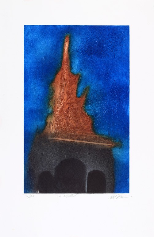 El Maestro Humberto Marçal es Desde 1994, es uno de los grandes responsables del éxito de las ediciones de grabado y litografía del Centro Portugués de Serigrafía. Hoy nos presenta una vez más, en un grabado en dos variantes cromáticas, su universo bajo el signo del diálogo poético con la naturaleza que inspira la mayoría de sus creaciones. Una poética de los cuatro elementos resaltada por la inmensa riqueza de una paleta que ilumina con oro alquímico.