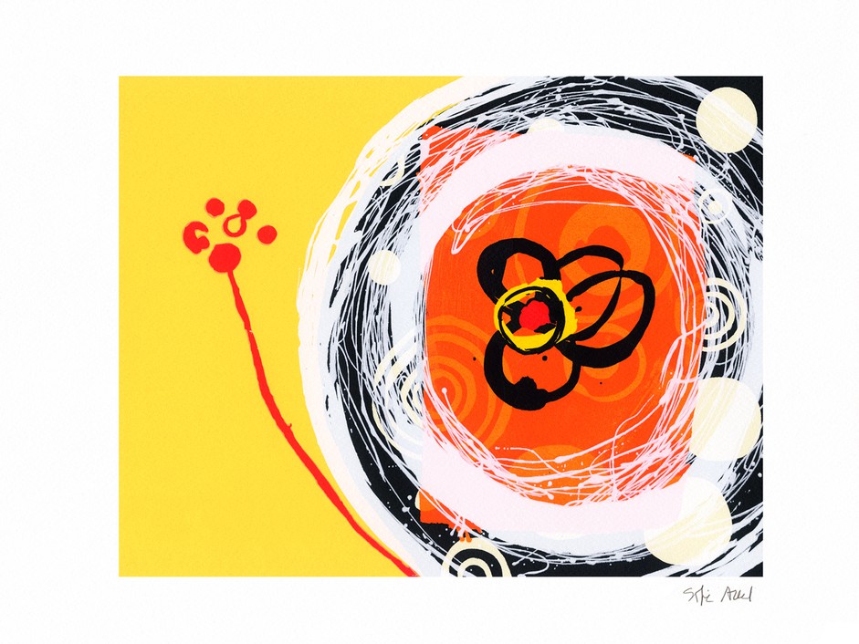 Sofia Areal ha ido construyendo uno de los caminos más interesantes y originales de nuestro tiempo, heredero de aspectos emblemáticos del arte contemporáneo: la abstracción y la simultaneidad del matrimonio Delaunay que encontró en Portugal (entre 1915 y 1916) una nueva incorporación a su trabajar. En la obra de Sofia Areal y en las serigrafías que presentamos en diferentes variantes cromáticas, vemos perfilarse un universo solar, toda una gramática de un Cosmos, fuente de todo movimiento, síntesis del orden y del Caos, fragmentado y uno, ardiente y simple. corazón de la Primavera con sus flores nacidas de las semillas de la alegría, siempre en el principio y centro de la vida, de su comienzo y de su eterno esplendor;ão.