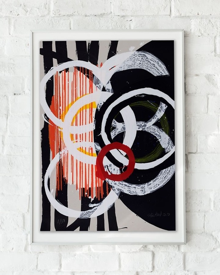 Sofia Areal ha ido construyendo uno de los caminos más interesantes y originales de nuestro tiempo, heredero de aspectos emblemáticos del arte contemporáneo: la abstracción y simultaneidad del matrimonio Delaunay, creadores de uno de los estilos que la marcaron. En su obra, la progresión y metamorfosis de las formas están impulsadas por los mecanismos ocultos de la creación. Tus gestos, que ya son Lo consideramos solar y mágico, está inspirado en los ritmos de la naturaleza. En estas serigrafías en 4 variantes cromáticas sobre fondo negro, el círculo, emblema del sol, vuelve a impulsar su creación. Entre el oro del día, las rosas del tiempo, la profundidad y el misterio del espacio, la repetición del círculo cobra vida. Nuestra memoria es un conocido título de Sonia Delaunay: “Iremos a al sol”.