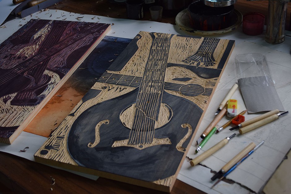 Artista cubano residente em Portugal, Raonel tem vindo a estabelecer paralelismos entre o nosso país e a sua pátria, neste caso explorando a proximidade entre instrumentos de corda dos dois países, que associa à tradicional guitarra portuguesa que já inspirou o famoso pintor franco americano Arman (1928-2005). Nas atuais gravuras intervencionadas pelo artista, os instrumentos são o pretexto para o bem orquestrado jogo das linhas, permitindo realçar os subtis acordes e as ressonâncias da cor entre azuis marinhos, ocres e castanhos, uma paleta, que talvez não por acaso, evoca a vizinhança do oceano, característica de Portugal e de Cuba.