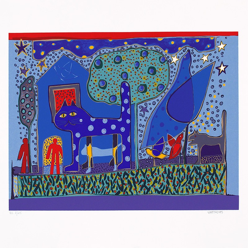 Joana Geraldes (n.1991) que iniciou o seu percurso pelo desenho tem vindo a dedicar-se cada vez mais à gravura, sendo atualmente uma excecional gravadora e impressora do Atelier CPS. As suas memórias pessoais e vivências biográficas, tema de uma exposição recente de desenhos no Entroncamento, onde nasceu, aparecem nesta gravura em duas variantes de cor, transpostas para um plano simbólico e lírico. A flor que se desfolha ao vento do acaso ou do destino, solar ou lunar, parece desafiar com a sua delicadeza e fragilidade, a noite de um desconhecido absoluto que representa todos os temores da humanidade. Afinal uma lição de esperança e permanência, num tempo de grande ansiedade.