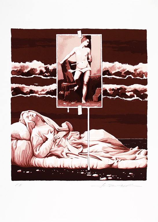 No presente trabalho de Van Zeller, sob um fundo nocturno expande-se a mística sensualidade de uma imagem evocativa de Santa Teresa de Ávila quadro de um excesso e de uma intensidade de emoções próximos do Barroco a que se associa a figura atormentada e sofredora de S. Sebastião. A sobreposição de planos enriquece a composição e adensa o mistério do contraste da esplêndida luz que as figuras irradiam e as sombras do fundo. Mistério acentuado ainda pelo contraponto entre o universo místico e as referencias culturais que lhes correspondem e pela presença das formas da natureza, explosivas e imprevisíveis.
