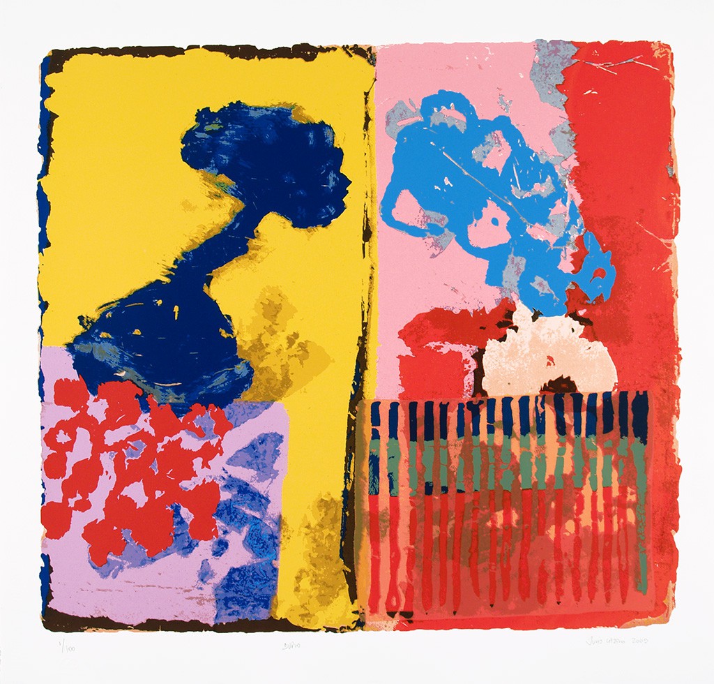 LIRISMO E ABSTRACÇÃO O universo de Júlio Castro povoado de referências orgânicas, situa-se na órbita de um lirismo abstracto de intensa expressão cromática. Esta nova composição, que duplica sem as repetir, as duas metades do espaço, reflecte um desejo de ordem que a imagem rapidamente subverte com o imprevisto da celebração festiva das formas da arte.