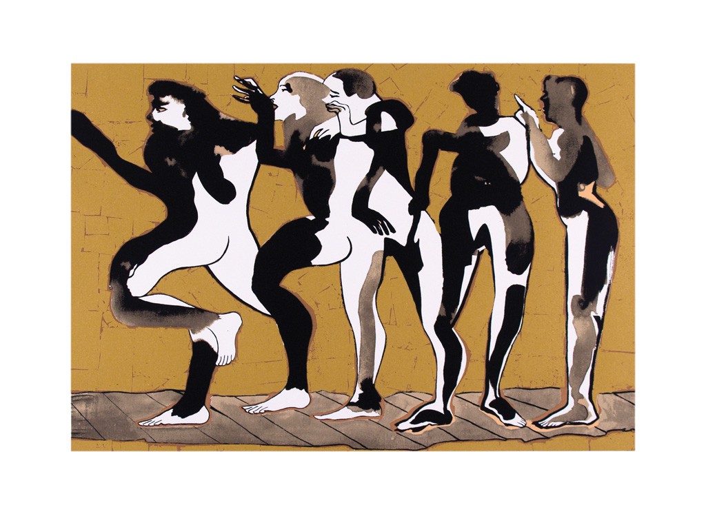 A DANÇA DOS SÁTIROS Patrícia Magano (n. 1954) que estudou na Escola Panamericana de Arte e na Universidade de Cleveland (E.U.A.), pintora, ceramista, cenógrafa e produtora de televisão, notabilizou-se como retratista e na pintura de murais. Na sua pintura encontramos humor e sátira temperados por alguma crítica social ambiguamente disfarçada em deleite pelo falso luxo e a sensualidade gratuita. Com um piscar de olhos para a evasão na selvagem e bela natureza, onde subsistem as forças primordiais, as energias fundadoras do mito, evocadas no movimento e no mistério a branco, negro e ocre, da sua dança dos sátiros.