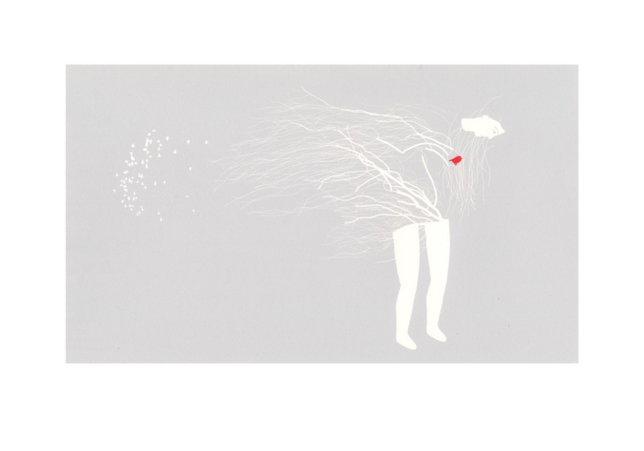 OS PENSAMENTOS NÃO FAZEM BARULHO As actuais serigrafias de Ana Ventura correspondem a ilustrações para o livro “Os pensamentos não fazem barulho”, com textos de Constance Ørbeck-Nilssen, que será brevemente lançado pela editora norueguesa Magikon Forlag. A artista cria nas suas imagens entre a ingenuidade e um surrealismo poético ao modo do belga Magritte, um novo código para a percepção que desfaz as fronteiras entre o real e o irreal, o visível e o invisível. Faz-nos viajar num território onde se subvertem as escalas e o insólito e o maravilhoso se reúnem “contaminando” positivamente os objectos e os seres das suas fábulas plásticas. Histórias para adultos que se recusam, como ela, a perder o mágico domínio da infância.