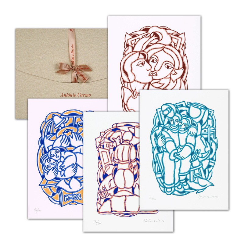 desenho, a figura recorta-se sobre uma sinfonia de tons laranja e ocres. Tal como na edição anterior, esta serigrafia, com 84 cores diretas e três meses de impressão, realça a exigente qualidade proporcionada pelo Atelier CPS.